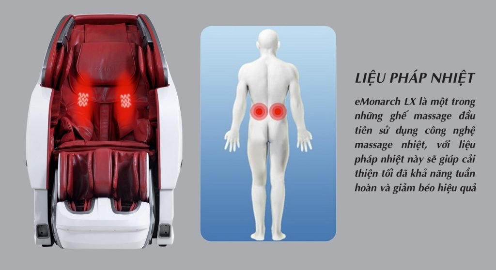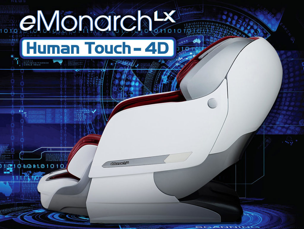 - Áp dụng công nghệ hiện đại, eMonarch LX là chiếc ghế đầu tiên trên thị trường có thể điều khiển dễ dàng bằng smart phone hoặc tablet thông qua phần mềm ứng dụng có sẵn. Khởi đầu của công nghệ trí tuệ nhân tạo.eMonarch LX được ví như viên ngọc trắng trong thế giới ghế massage