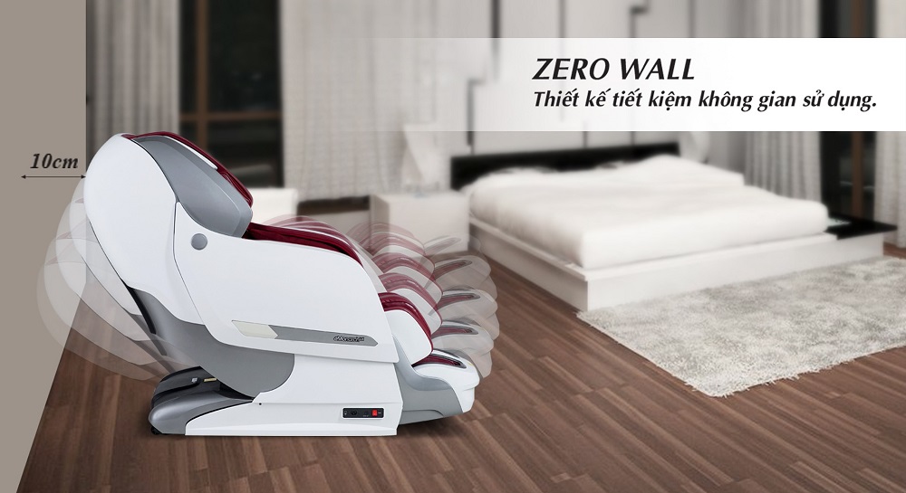 - Với thiết kế tiết kiệm không gian sử dụng – Zero wall. Ghế massage eMonarch LX dễ dàng tịnh tiến và thu lại khi không sử dụng trong khoảng cách 10cm so với bề mặt tường phía sau ghế, là bước phát triển dài trong ngành công nghiệp ghế massage.